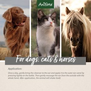 Apply once a day by gently guiding it to the ear and, with slight pressure on the bottle, deliver the cleaner into the outer ear canal. Afterward, lightly massage the ear from the outside with your whole hand. The animal will shake itself after the application. The dog, cat, and horse ear cleaner can be used daily.