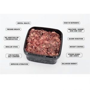 On average, feed 2-3% of the adult dog’s body weight per day. Keep frozen until required. Defrost in the fridge overnight and use within 48hrs of defrosting.